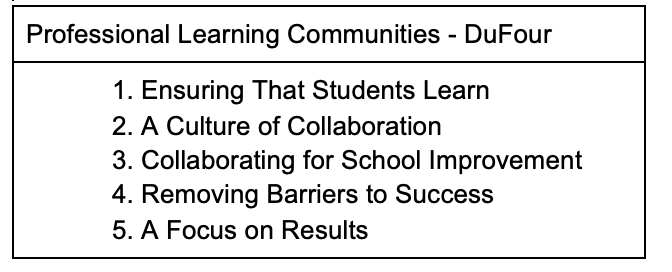 Richard DuFour in ASCD’s “What is a ‘Professional Learning Community’? focuses on the principles of a professional learning community. It may be “assumed” that teachers and administrators are part of a professional learning community, but is that really true? And are the right people included? Or are they “going through the motions and checking it off a list”? His list for learning communities includes the following principles.